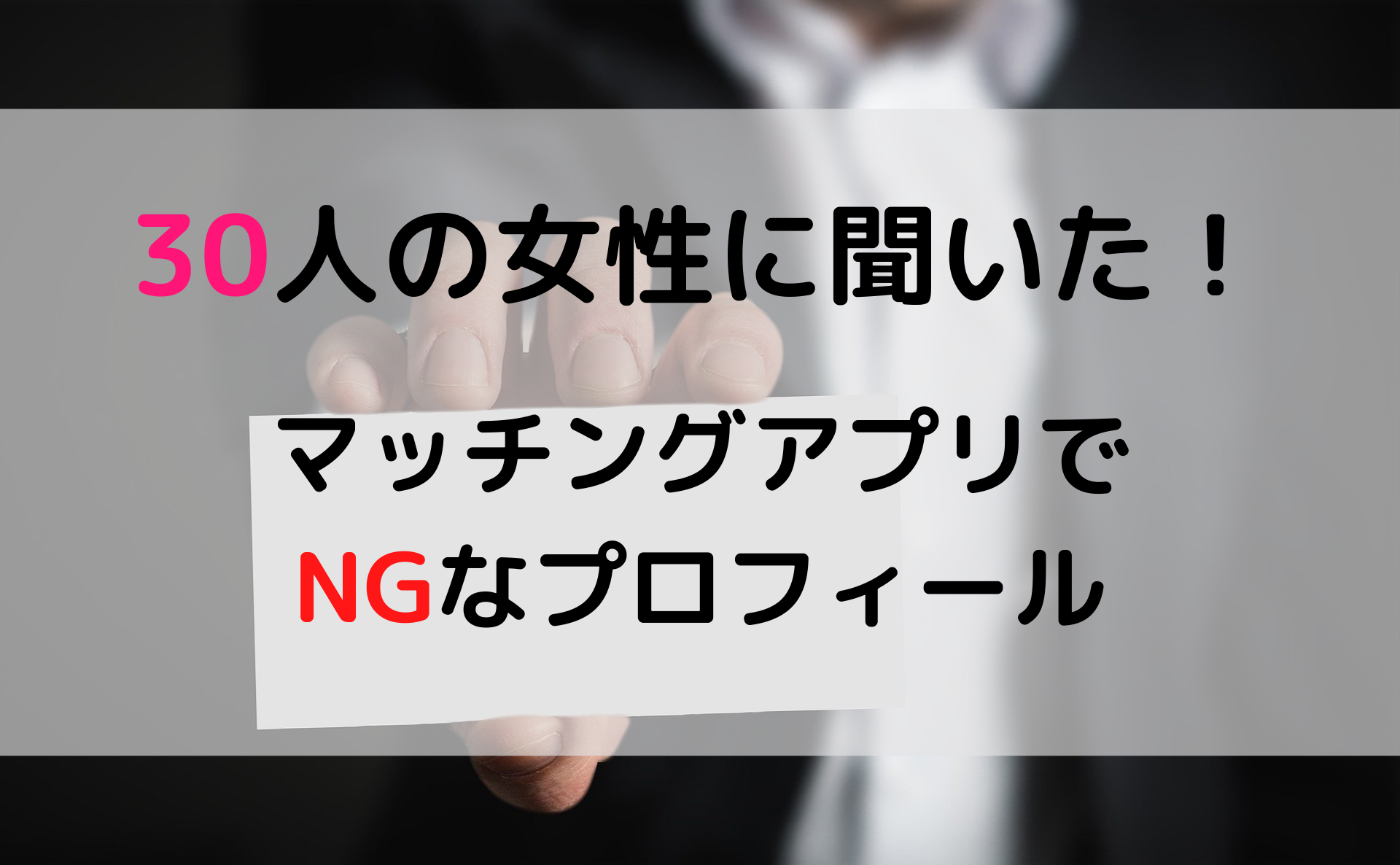 「女の子にメッセージを送ってみたけど、全く返信が無い!」 「マッチングアプリを使ってみたけど全然女の子とマッチングしない!」 こんな悩みをお持ちの方、いませんか?実は全部、マッチングアプリをバリバリ使っていた僕の考えていたことです。そして今だから言えます。 原因は全部ダメなプロフィールのせいです! かっこよく見える奇跡の一枚を最初に持ってきて、内容もバッチリ充実させてるから大丈夫!なんて思っていた […]